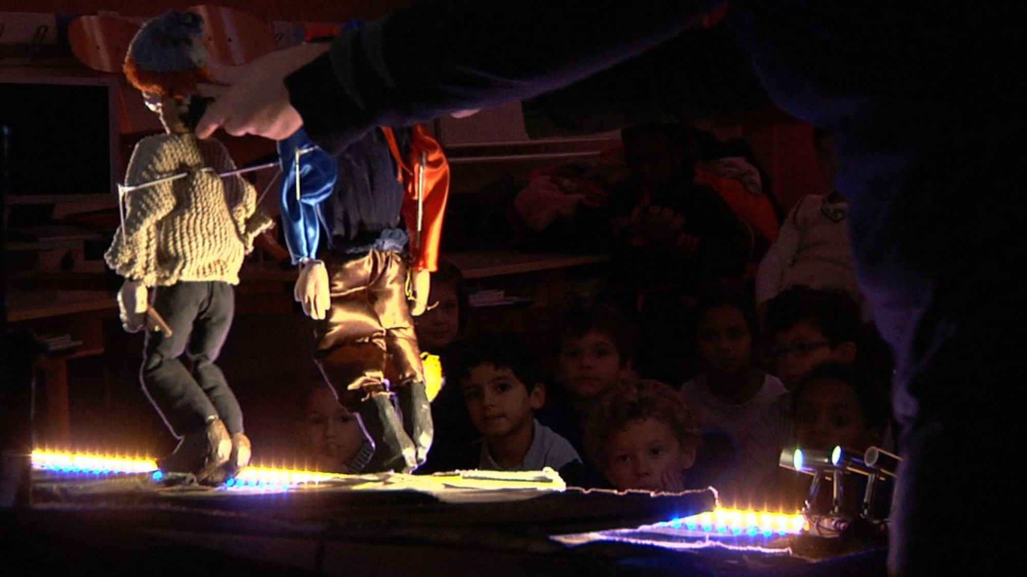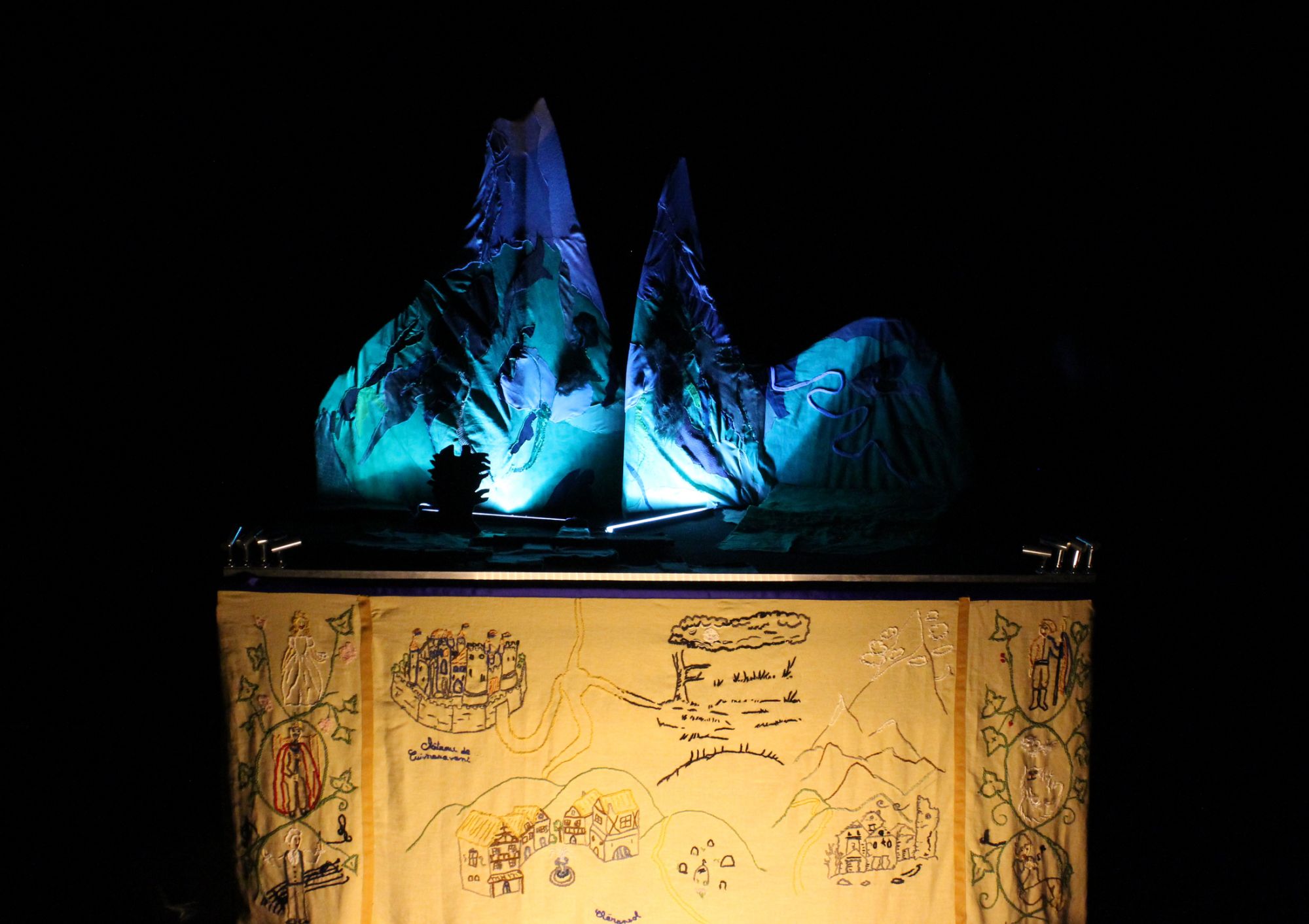 Isabelle Cerclé, la marionnettiste, a créé une scénographie mobile, qui s'adapte au fur et à mesure du récit.