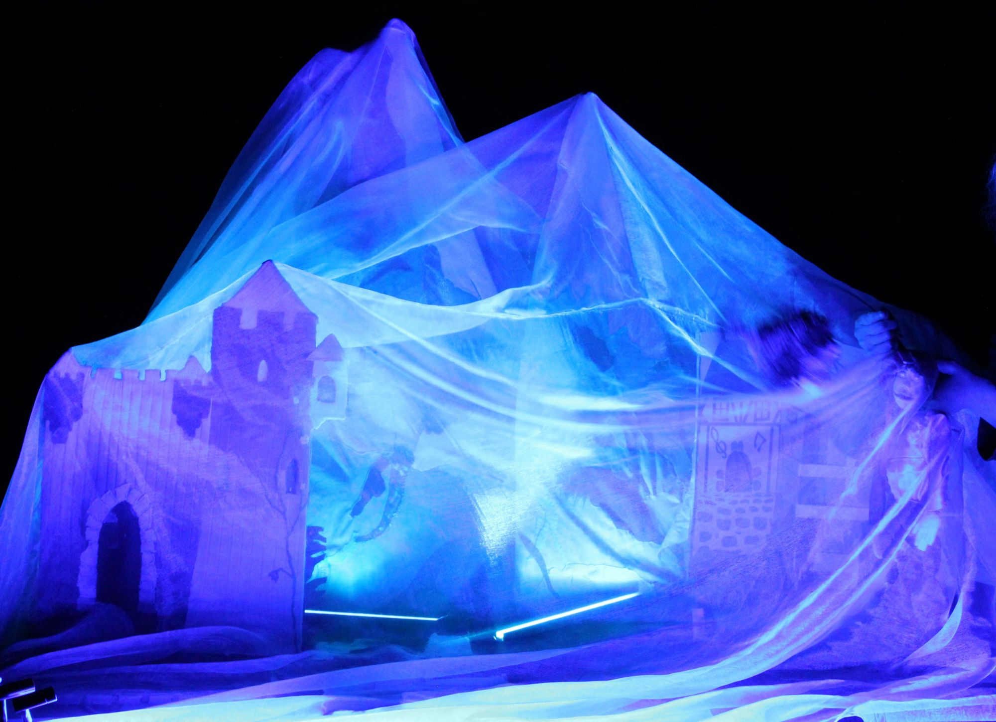 Aurélie Rochmana mis en scène la Princesse sans Sommeil avec des marionnettes sur table, la parant de décors mobiles, de voiles, de tissus et de lumières qui renforcent l'aspect poétique et onirique de l'aventure de Philéas, le héraut-héros de l'histoire.